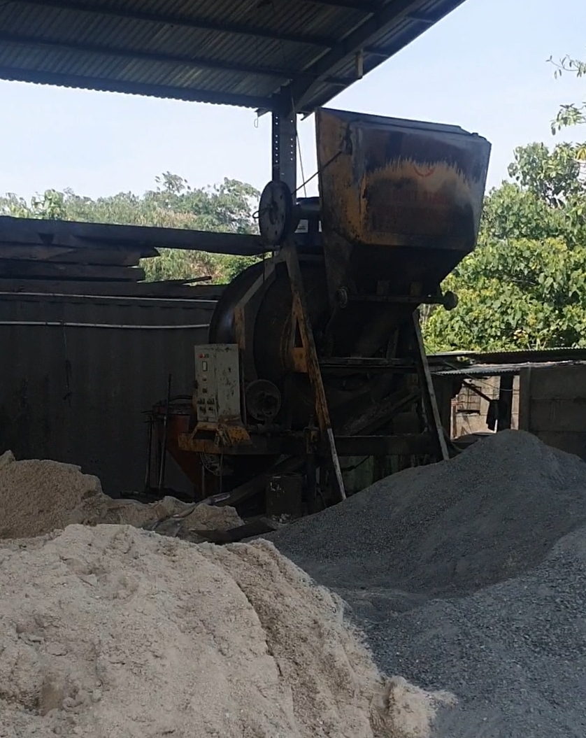 Pencampuran Beton: Campuran beton (semen, pasir, kerikil, dan air) dicampur dengan proporsi yang tepat untuk menghasilkan beton yang kuat.